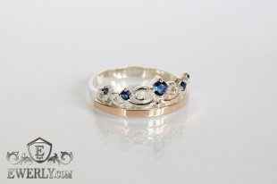 Ring of 925 sterling silver with 9k gold insert and black cubic zirconia.