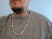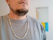 Полновесная цепочка. Очень популярное среди мужчин плетение «Рамзес», также на просторах интернета данное плетение можно увидеть под названием «Двойной обратный бисмарк». В особенности мужское внимание привлекают толстые серебряные цепочки из «Двойного обратного бисмарка» с размерами близкими к размерам на фото. И тем не менее, если такая цепочка лично для Вас смотрится на шее весьма громоздкой или наоборот маловатой, то Вы без особого труда можете откорректировать практически любой её параметр под свои вкусы, в том числе есть возможность выбрать как с чернением, так и нечернёную или же с родированием.